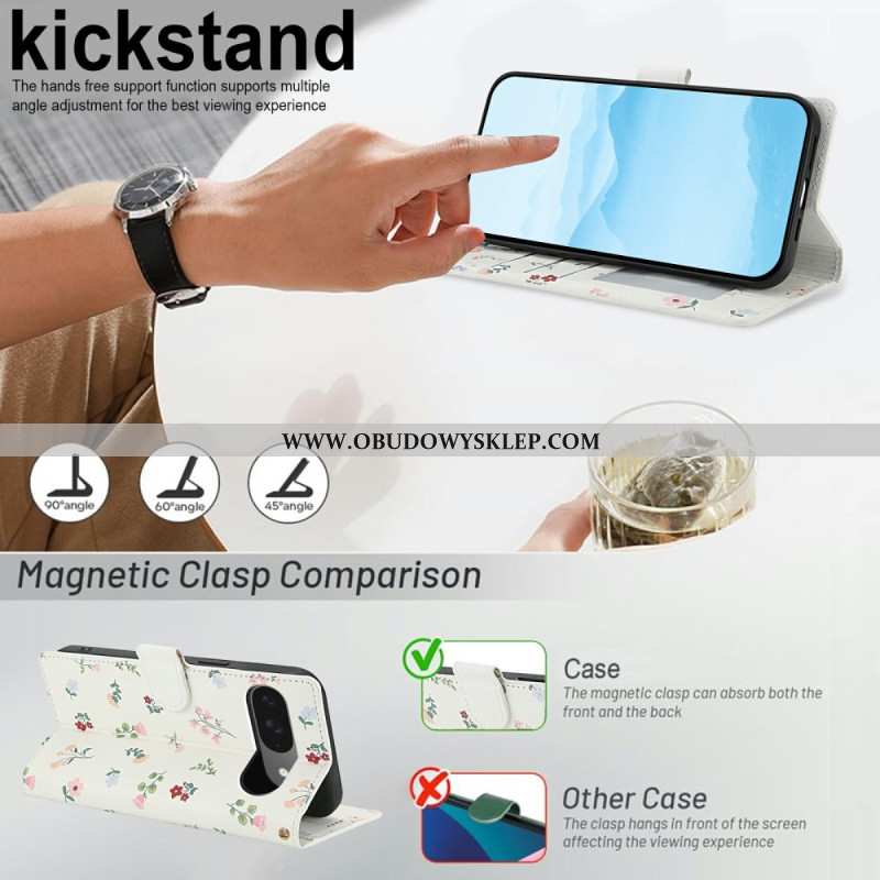 Etui Folio Do Google Pixel 10 / 10 Pro Pasek Z Motywem Kwiatowym