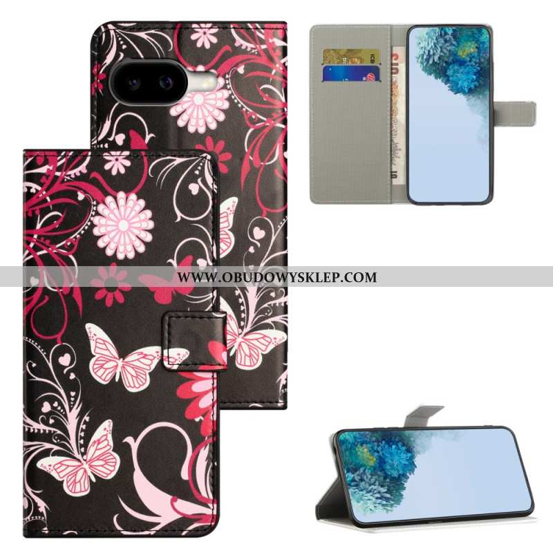 Etui Folio Do Google Pixel 10a Motyle Na CZarnym Tle
