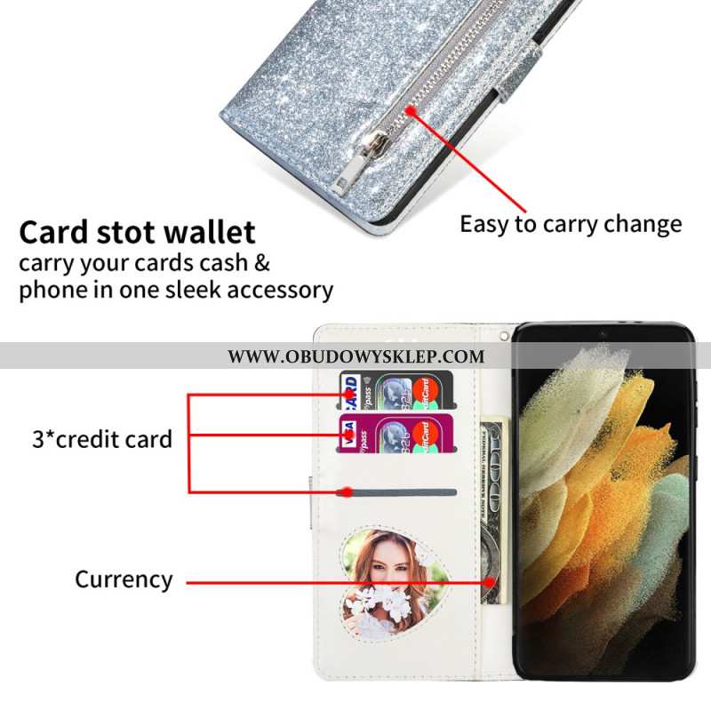 Etui Folio Do Samsung Galaxy S25 Ultra 5g Brokatowe Etui Z Paskiem