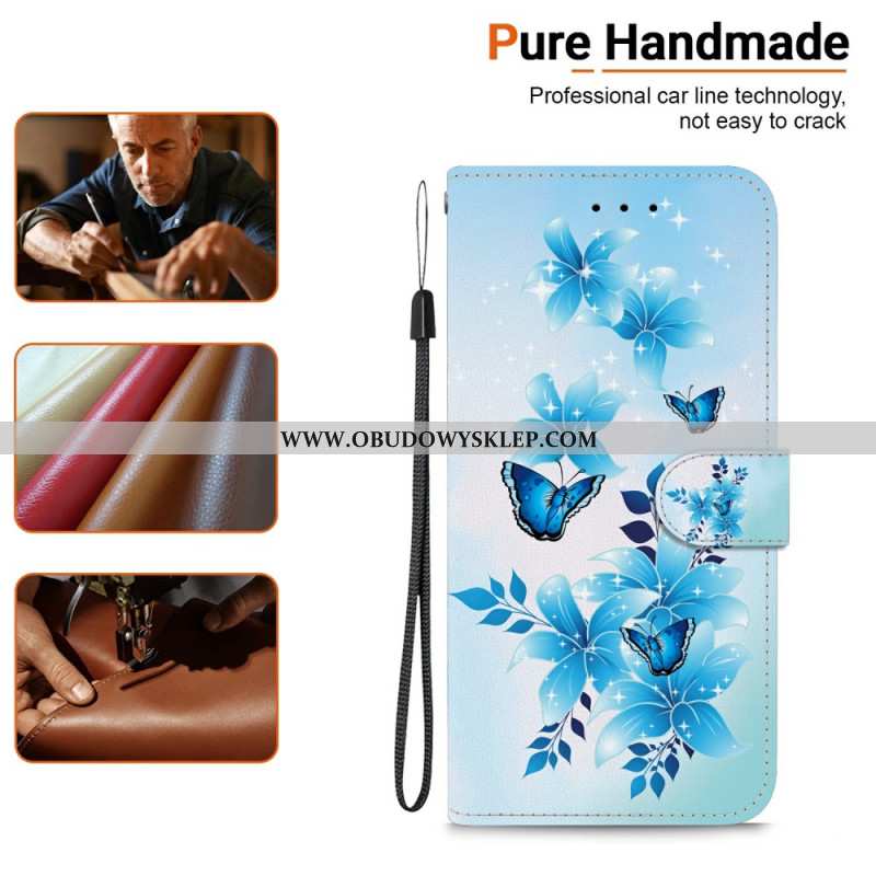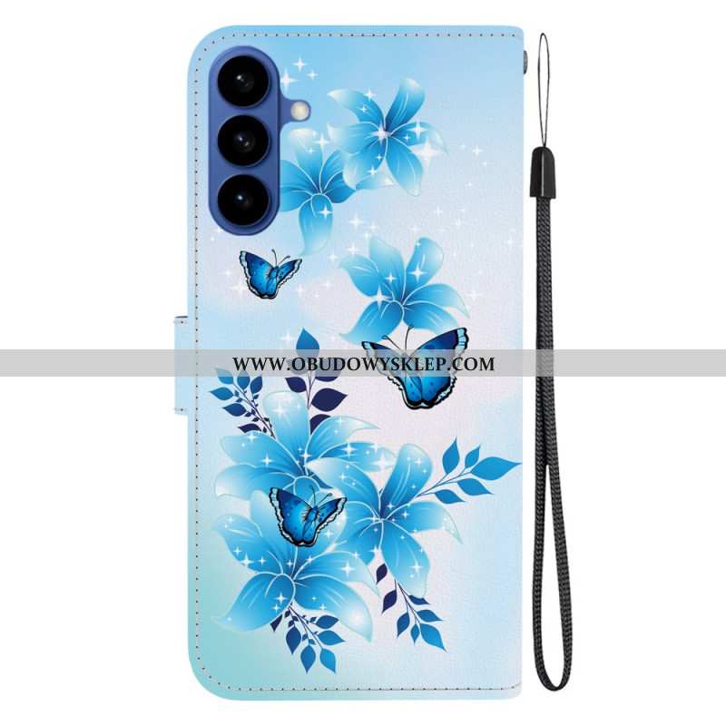 Etui Folio Do Samsung Galaxy S26 Niebieskie Motyle I Kwiaty