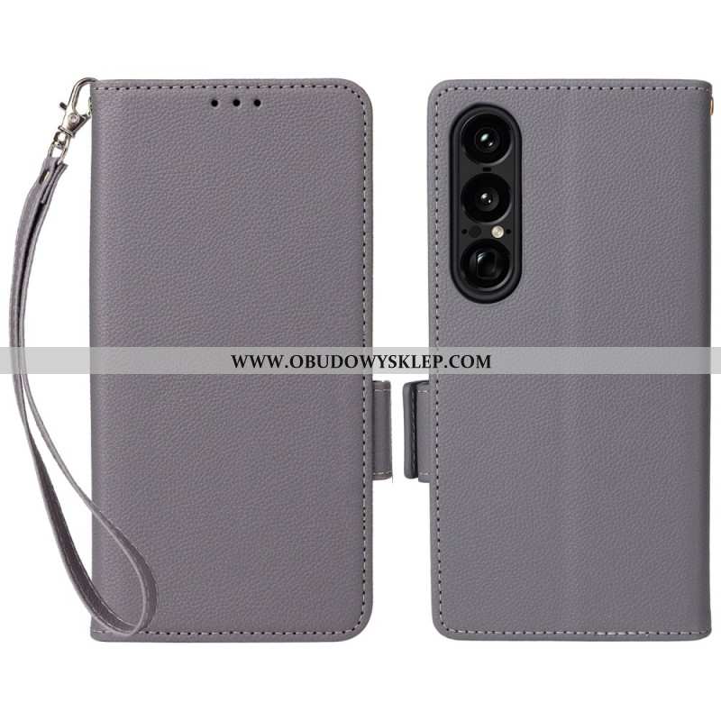 Etui Folio Do Sony Xperia 1 Vii Tekstura Liczi Z Paskiem