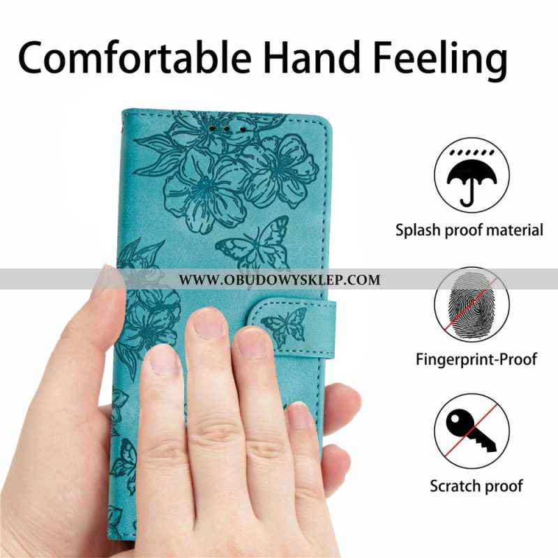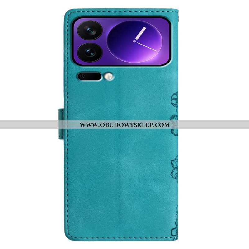 Etui Folio Do Xiaomi 17 Pro Motyle I Kwiaty Z Efektem Zamszu