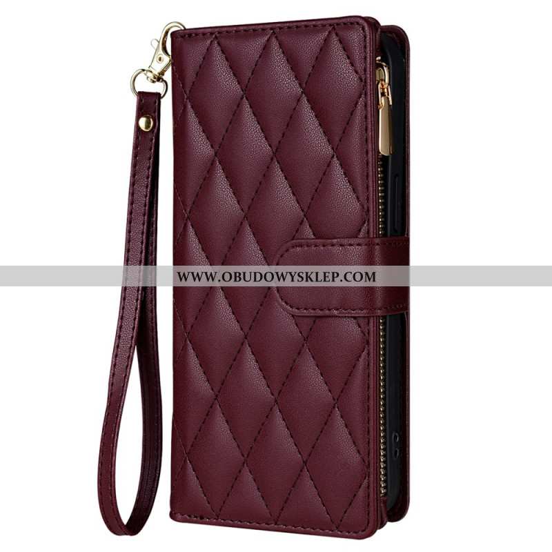 Etui Folio Do iPhone 16 Pro Pikowany Portfel Z Paskami