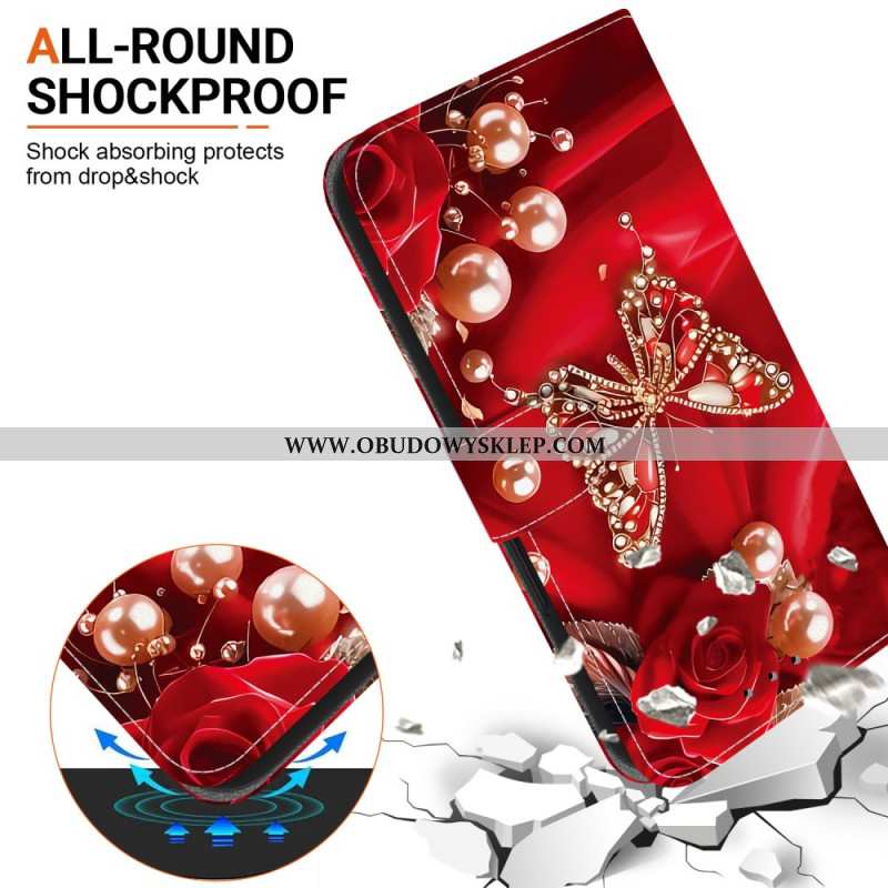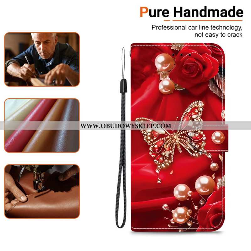 Etui Folio Oneplus Nord 5 CZerwone Motyle Etui Ochronne