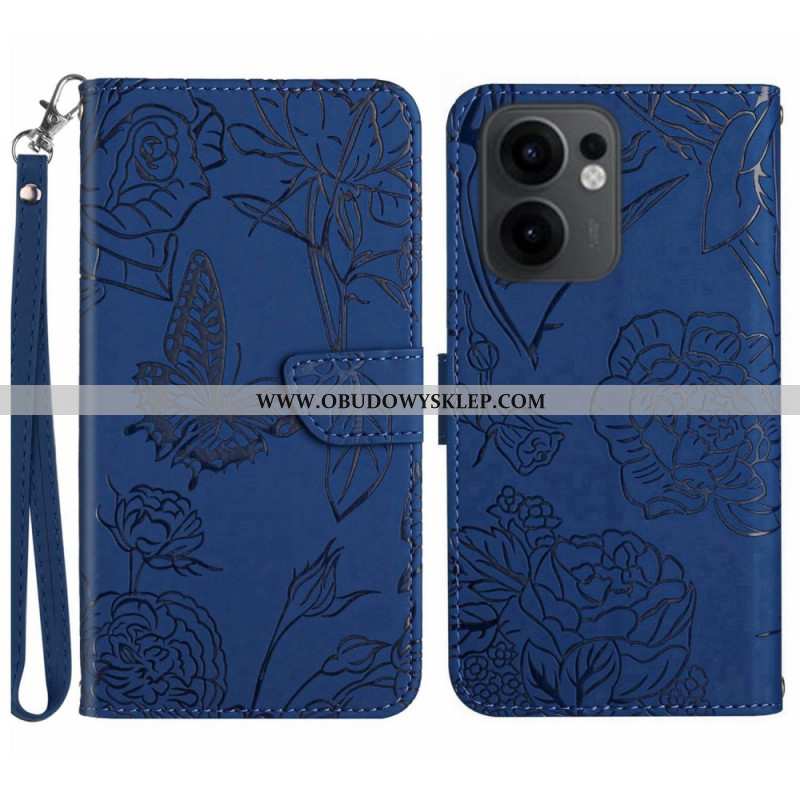 Etui Folio Oppo Reno 13f 4g / 5g / 13 Fs 5g Pasek Z Nadrukiem Motyla