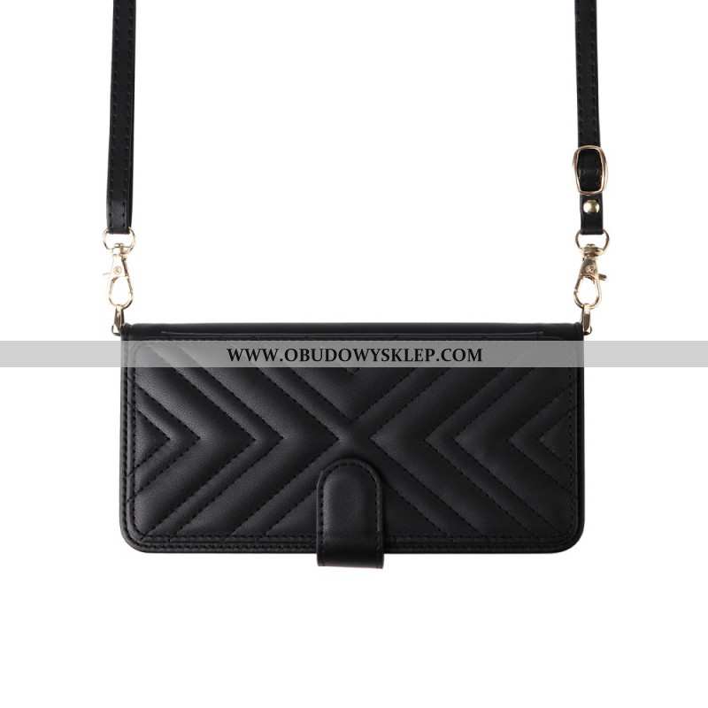 Etui Folio Oppo Reno 14 Pro 5g Pikowane Z Paskiem I Paskiem Na Nadgarstek Etui Ochronne