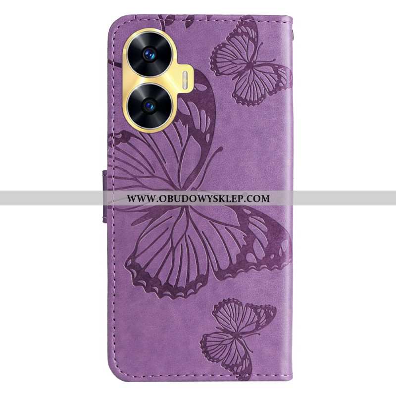 Etui Folio Realme C55 Pasek Z Gigantycznymi Motylami Etui Ochronne