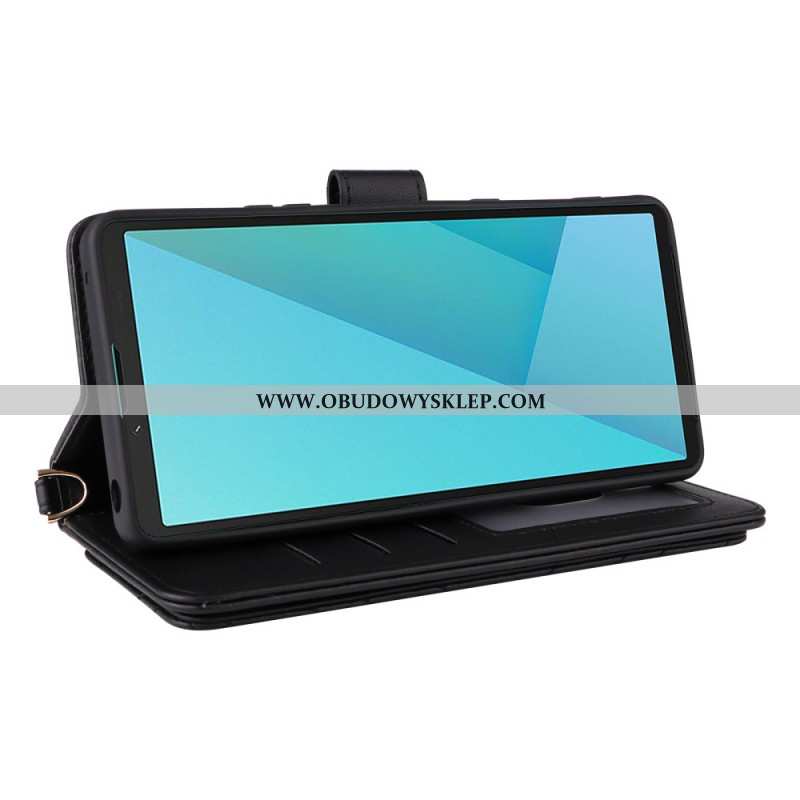 Etui Folio Sony Xperia 10 Vii Pikowany Z Paskiem I Paskiem Na Nadgarstek
