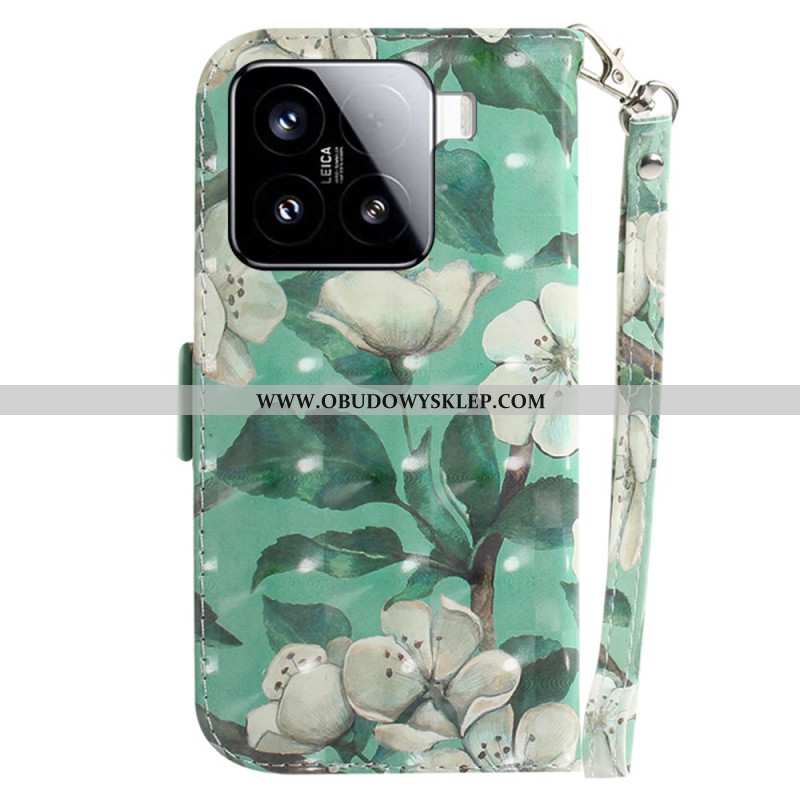 Etui Folio Xiaomi 15 Smycz Kwiaty Akwarelowe Etui Ochronne