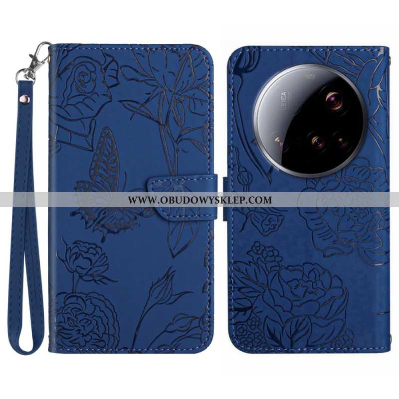 Etui Folio Xiaomi 15 Ultra Pasek Z Nadrukiem Motyla Etui Ochronne