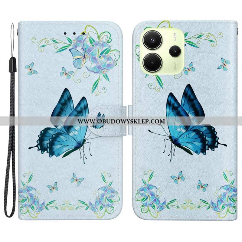 Etui Folio Xiaomi Redmi Note 14 4g Niebieski Motyl I Kwiaty Etui Ochronne