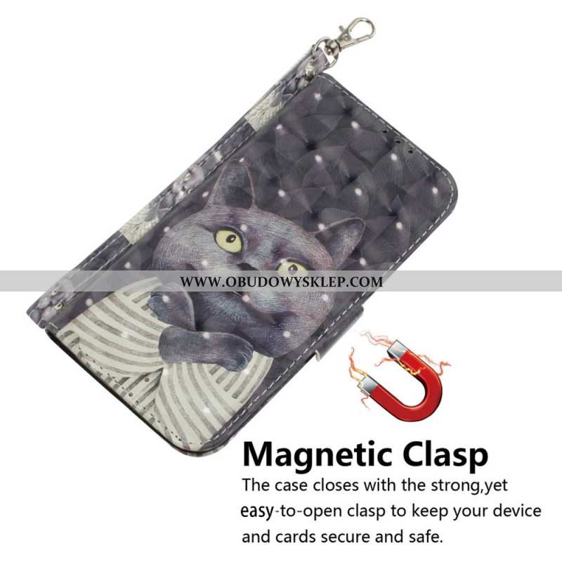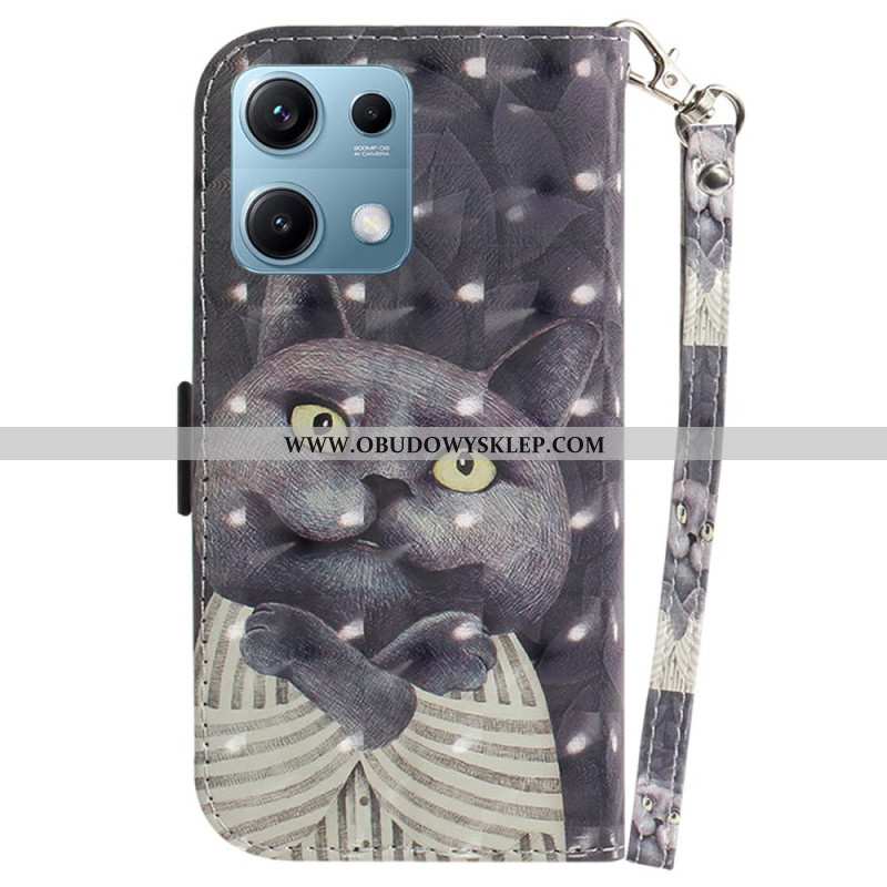 Etui Folio Xiaomi Redmi Note 14s Smycz Z Szarym Kotem