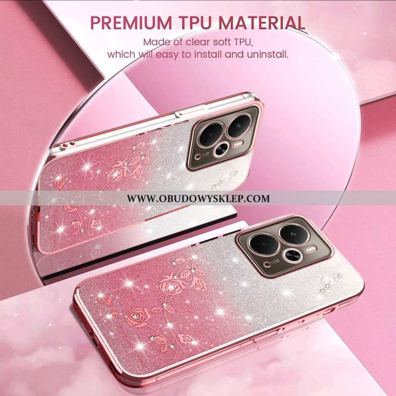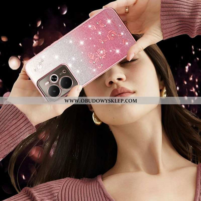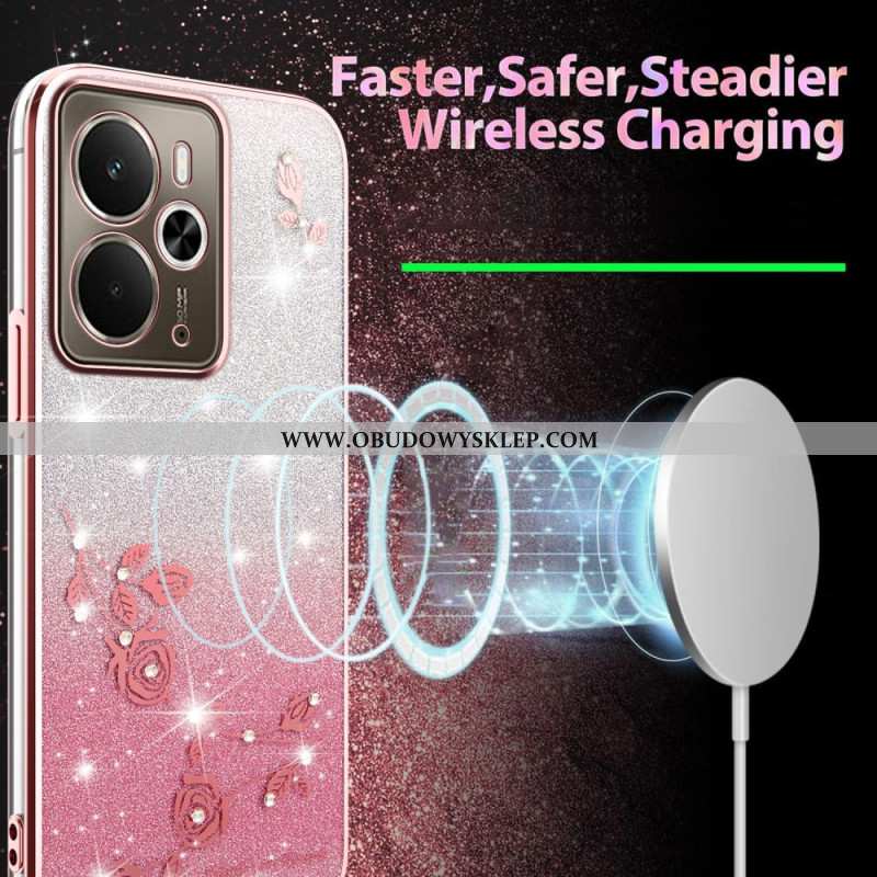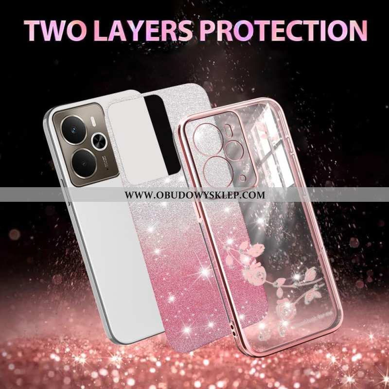 Etui Do Realme 14t 5g Pasek Z Kryształkami I Kwiatami Kadem