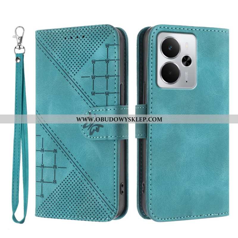 Skórzany Futerał Realme 14 5g Etui Na Telefon Wzór Trójkątny