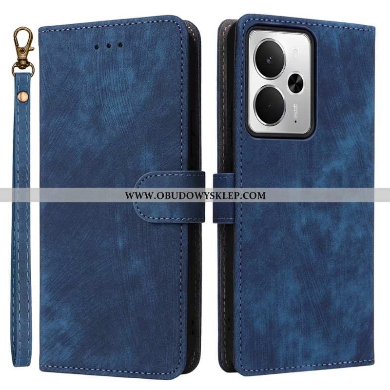Etui Folio Do Realme 14t 5g Efekt Skóry Ze Smyczką
