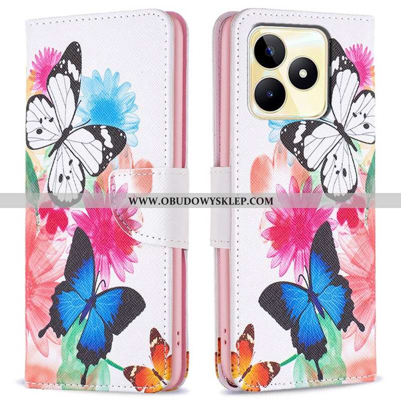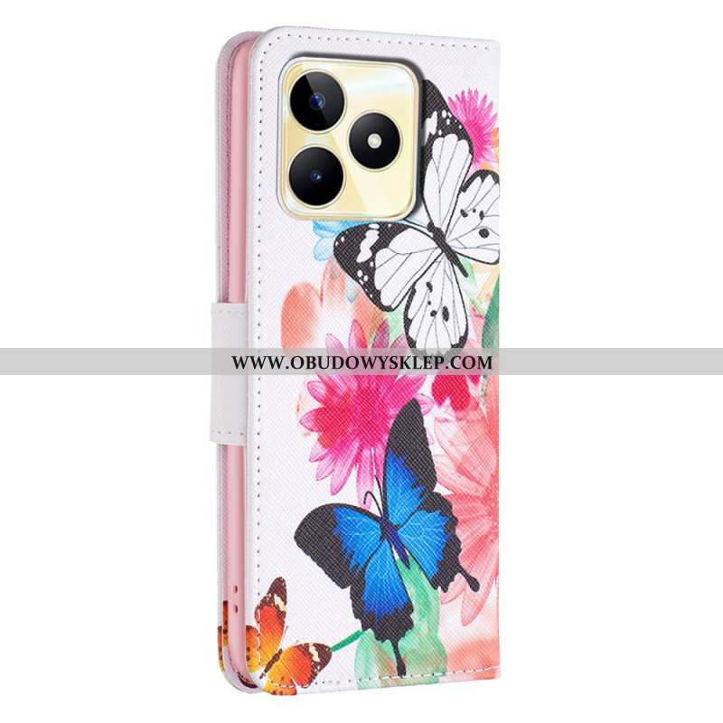 Etui Folio Realme C53 Kwiat Akwarelowy Etui Ochronne