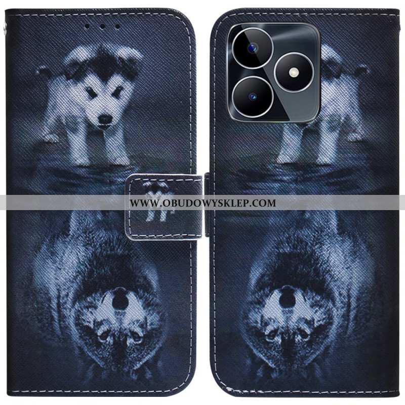 Etui Folio Realme C53 Wilk Akwarela Etui Ochronne
